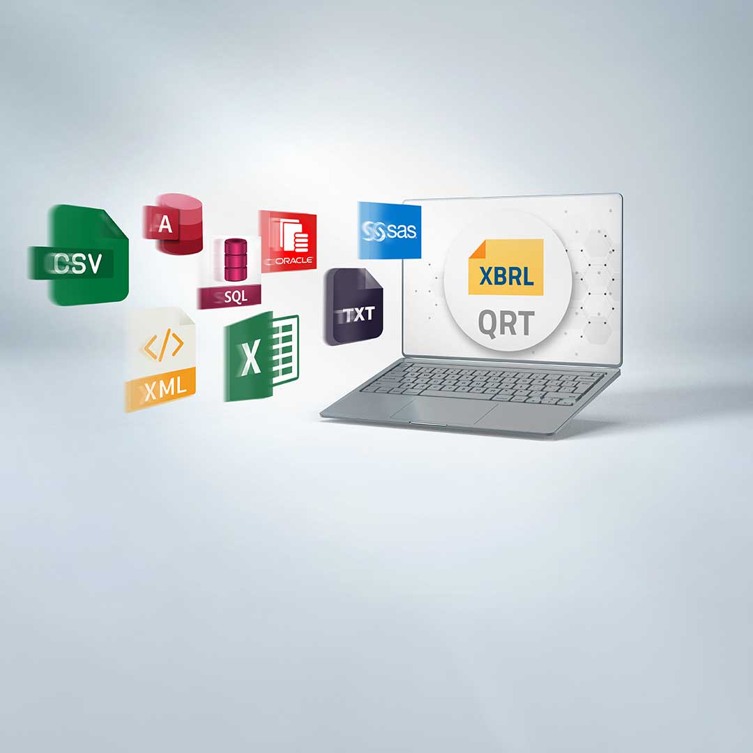 You can seamlessly pull in data from several sources. Some of your data may be stored in databases, Excel files, CSV-files, or other formats. Multiple sources can go into multiple templates, and you can define relevant transformations to be used quarter after quarter, year after year. Our reporting tool, QRT-Tool, enables you to build a full automated integration for all reporting packages.