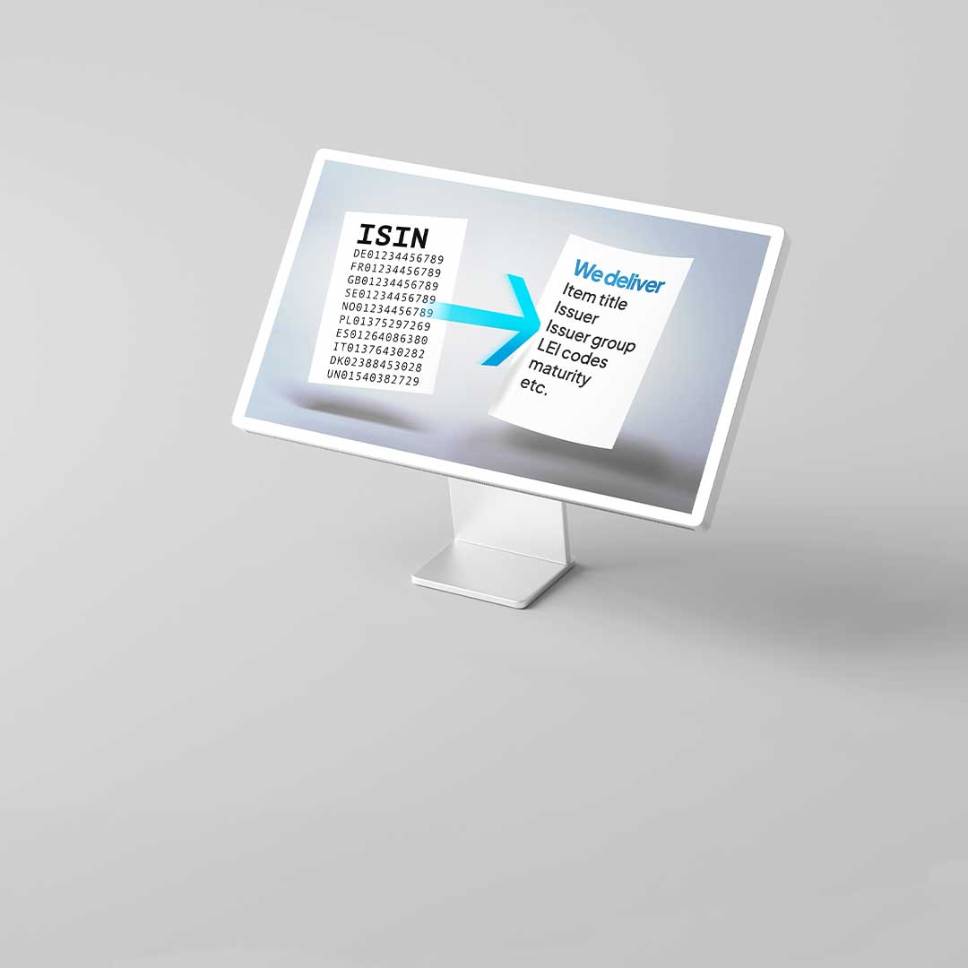 You can use the embedded asset data in our QRT-Tool. More than 13 million securities traded in European and British stock exchanges are available. Also, information from the Global Legal Entity Identifier Foundation is made available, so you can get information about ultimate parent, LEI-codes etc. We have organised the repository by ISIN code, so you can improve and streamline your reporting easily, automatically, and with blazing-fast performance.